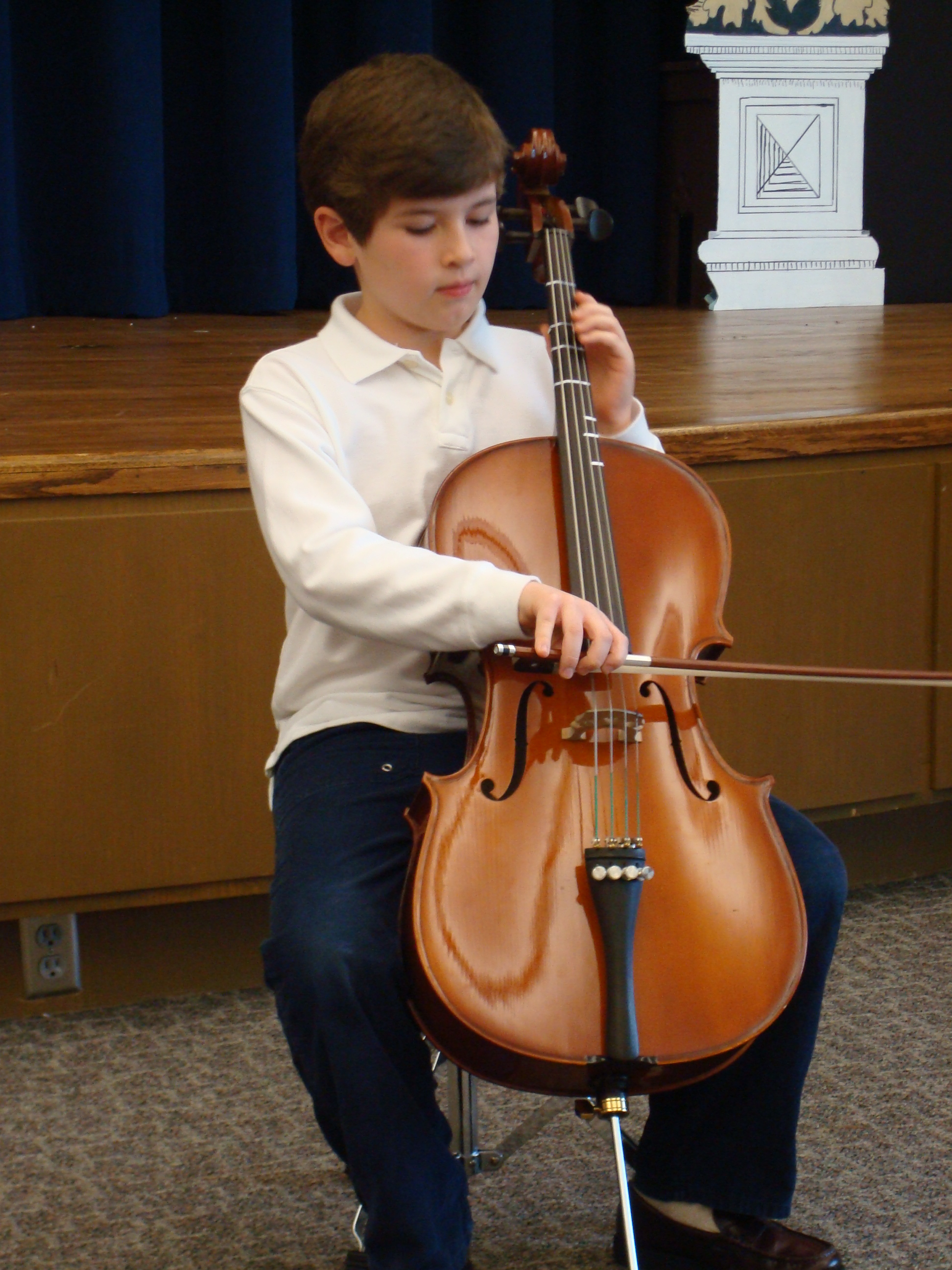 Getty has played cello for 6 years. His favorite piece to play is Rigadoon, and he likes that his friends are impressed that he plays cello. Getty also enjoys reading, animals, ocean life, and studying history.(You may click on the photo to open a high resolution copy of the image.)