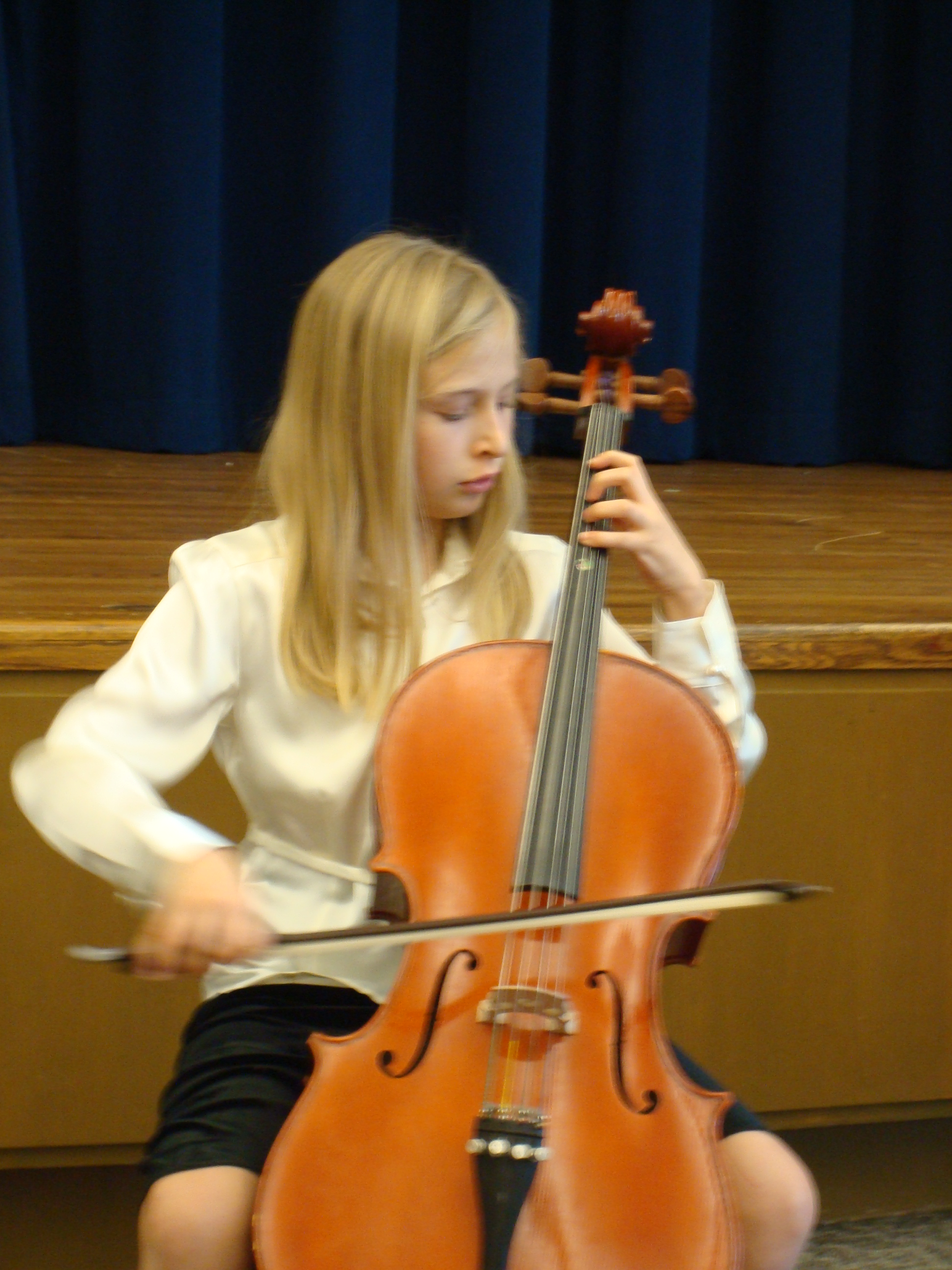 Jane has played cello for 5 years. She loves how playing music can make her feel like she has traveled to a different world. Her favorite piece to play is Gavotte in C Minor. Jane’s hobbies include tennis, volleyball, swimming, reading, and traveling.(You may click on the photo to open a high resolution copy of the image.)